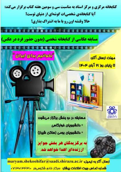 مسابقه در دو بخش برگزار میشود: *دانشجویان خوابگاهی *دانشجویان بومی (ساکن شیراز)